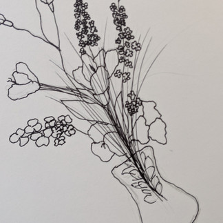 They practiced contour drawing (drawing the shape of an object before adding details), and developing a drawing using vases of flowers as a reference!
